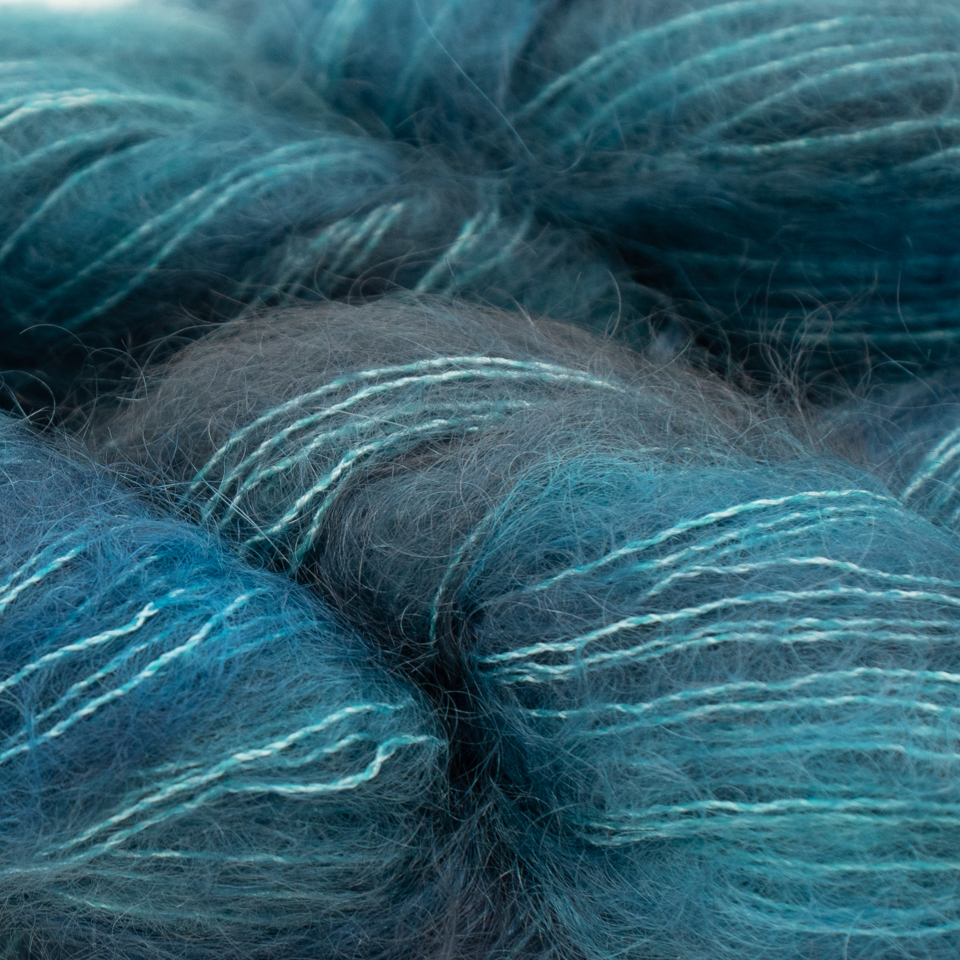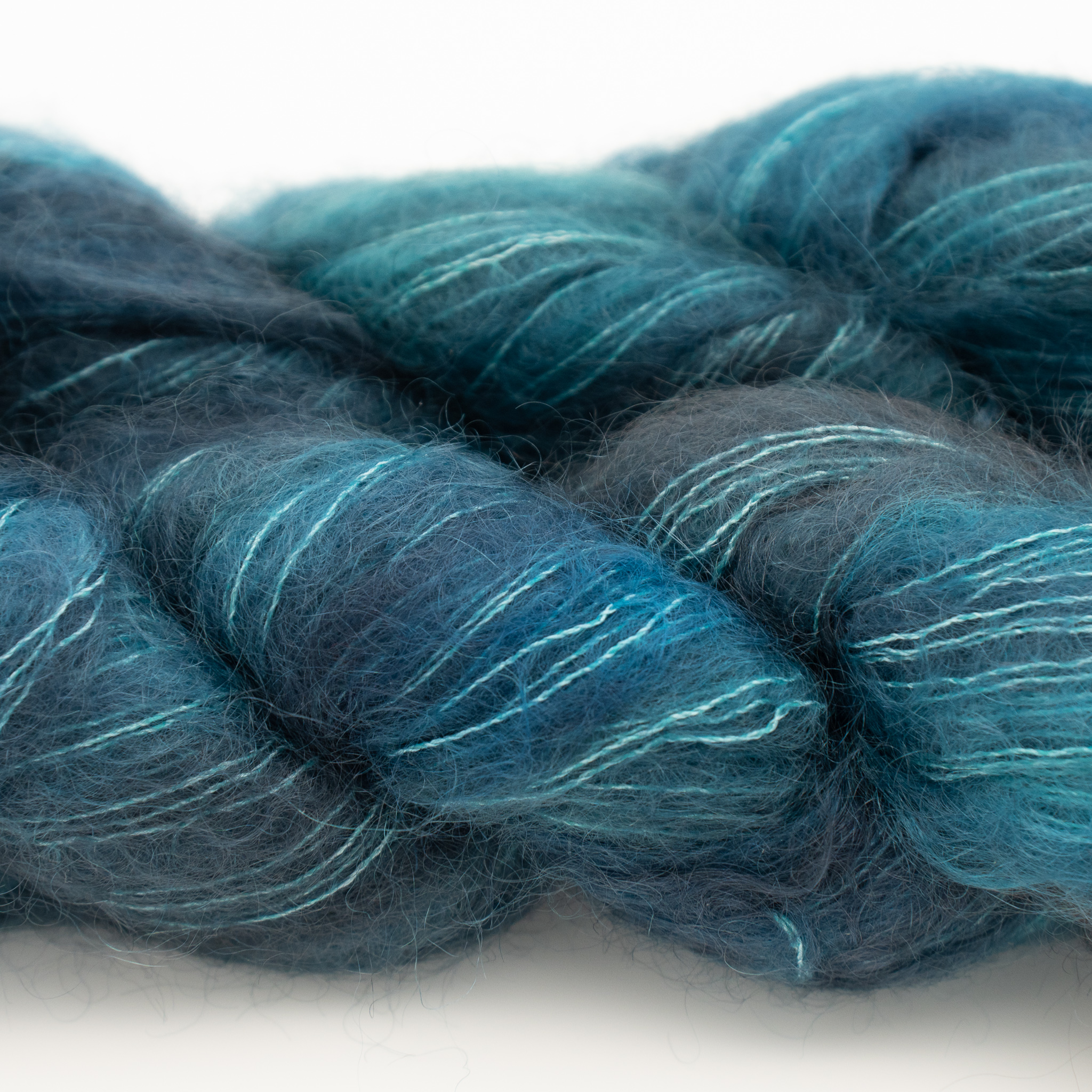 Der Hersteller beschreibt das Garn als 72% Mohair, 28% Seide