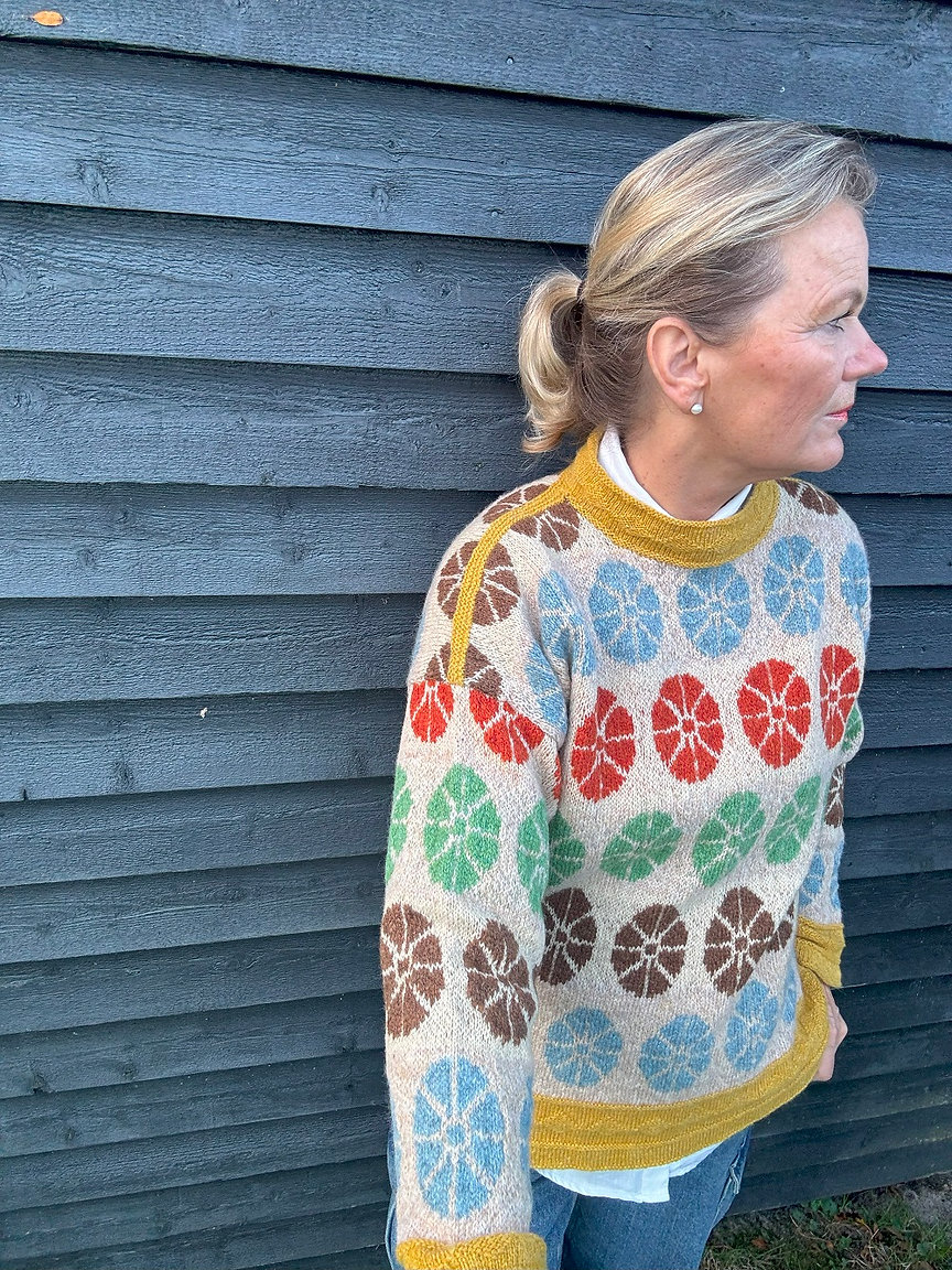Der Circle of Life Sweater von Christel Seyfarth ist ein harmonisches Zusammenspiel aus Form, Farbe und Technik. Mit seinem geradlinigen Schnitt und den kunstvollen Fair-Isle-Mustern verkörpert er die Idee des Kreislaufs – ein zeitloses Design, das sowohl Ruhe als auch Lebendigkeit ausstrahlt.