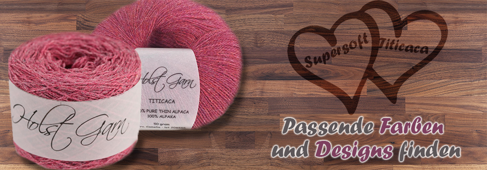 Habt ihr schon einmal an eine Kombination aus Holst Garn Supersoft und Holst Garn Titicaca gedacht? Wenn nicht, wird es Zeit, dieses Highlight einmal auszuprobieren. Dabei verstrickt ihr beide Fäden gleichzeitig. Die Kombination des strukturstarken Supersoft aus 100% Wolle und dem flauschig-weichen Titicaca aus 100% Alpaka ergibt ein ganz beeindruckendes Maschenbild mit atemberaubender Griffigkeit.